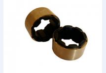 橡膠軸承 用于軸與軸套之間起支撐作用。分銅套橡膠軸承、鐵殼橡膠軸承、軸承條及全橡膠軸承。采用模壓法制造。主要用于船舶軸流泵、深井泵等,作為漿葉、泵葉的支撐體。